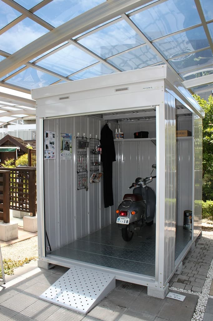 バイクの保管庫としても趣味の整備場としてお使いいただける、イナバ物置人気のシリーズ。様々なサイズ、オプションがあります。
