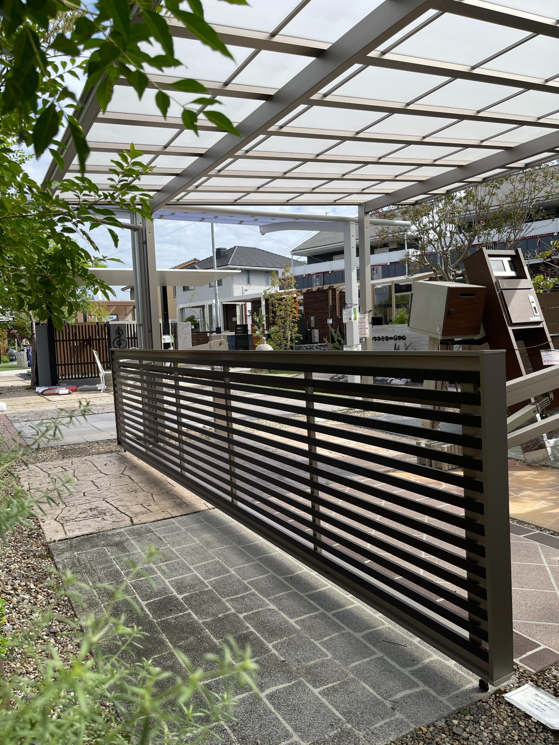 スタンダードなデザインが大人気のカーポートです。1台用と2台用ワイドタイプが展示してあります。