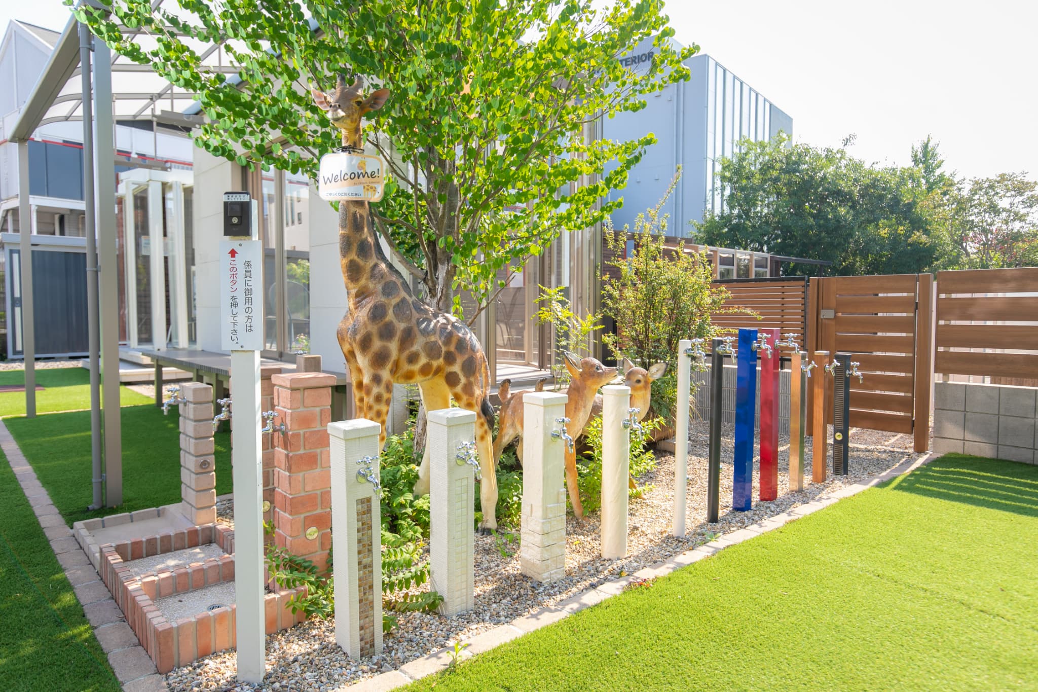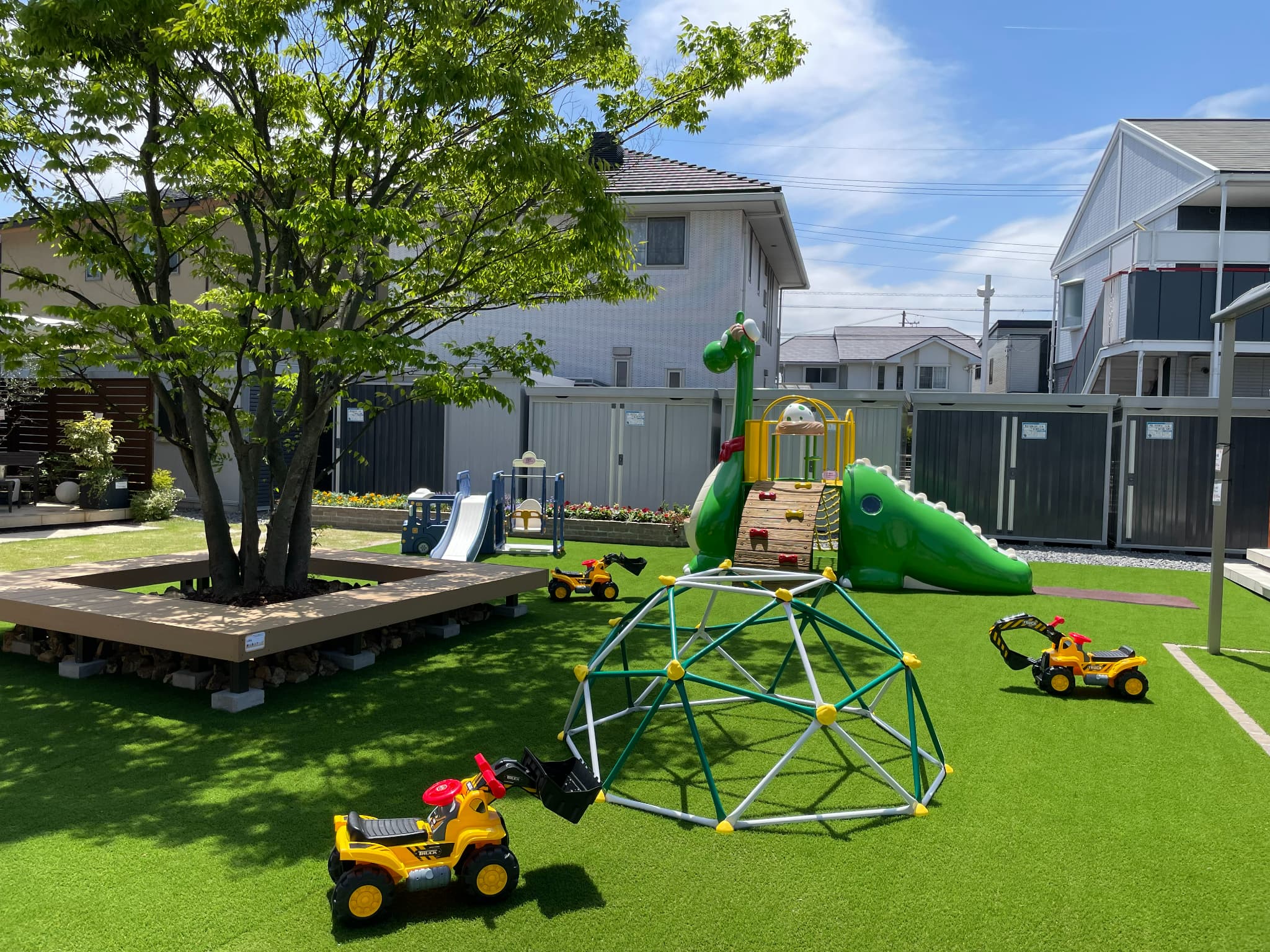 恐竜の滑り台や四季折々の草花が皆さまをお出迎え。ガーデンライフを楽しく演出するこだわりのアイテムが満載です