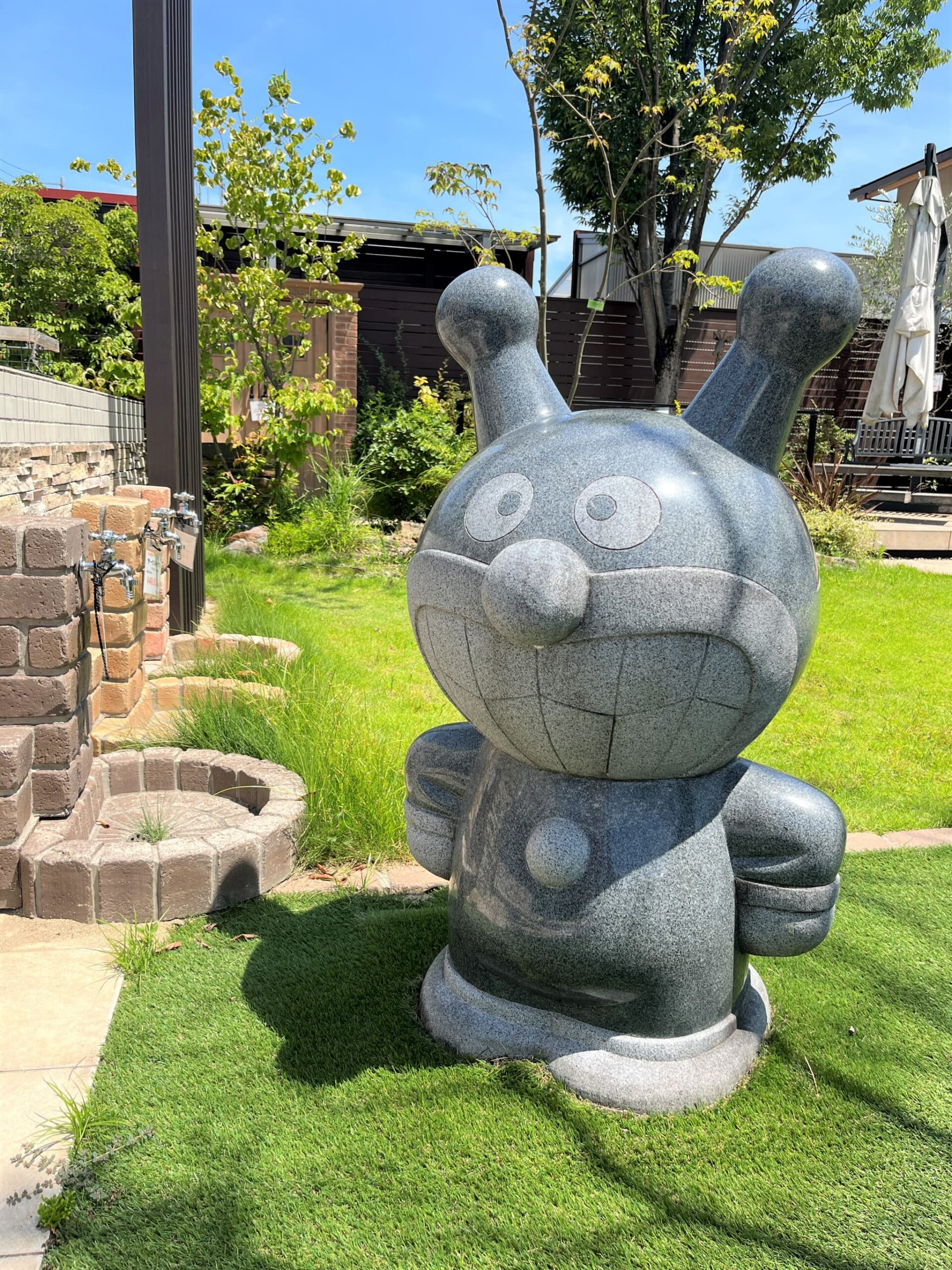 展示場内のアンパンマン、ドキンちゃん、ばいきんまんの石像と一緒に記念撮影ができます。