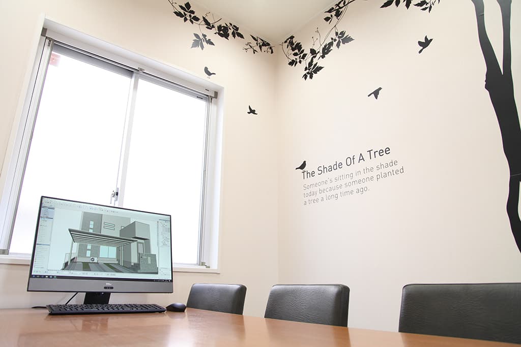 パソコンを使って3D画面を見ながらの個室での商談スペースもご用意しています。