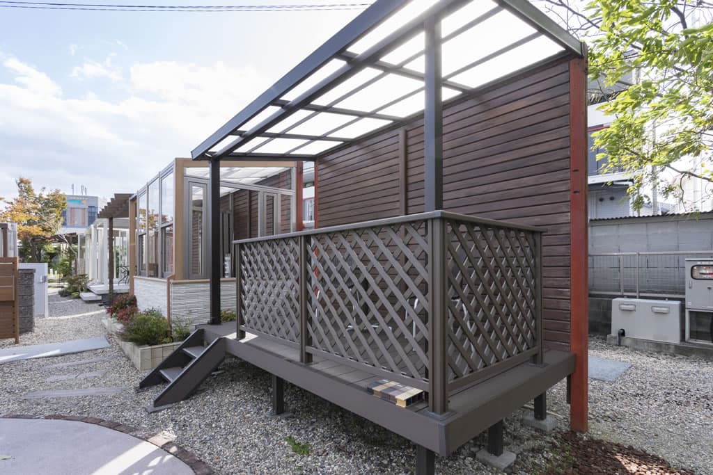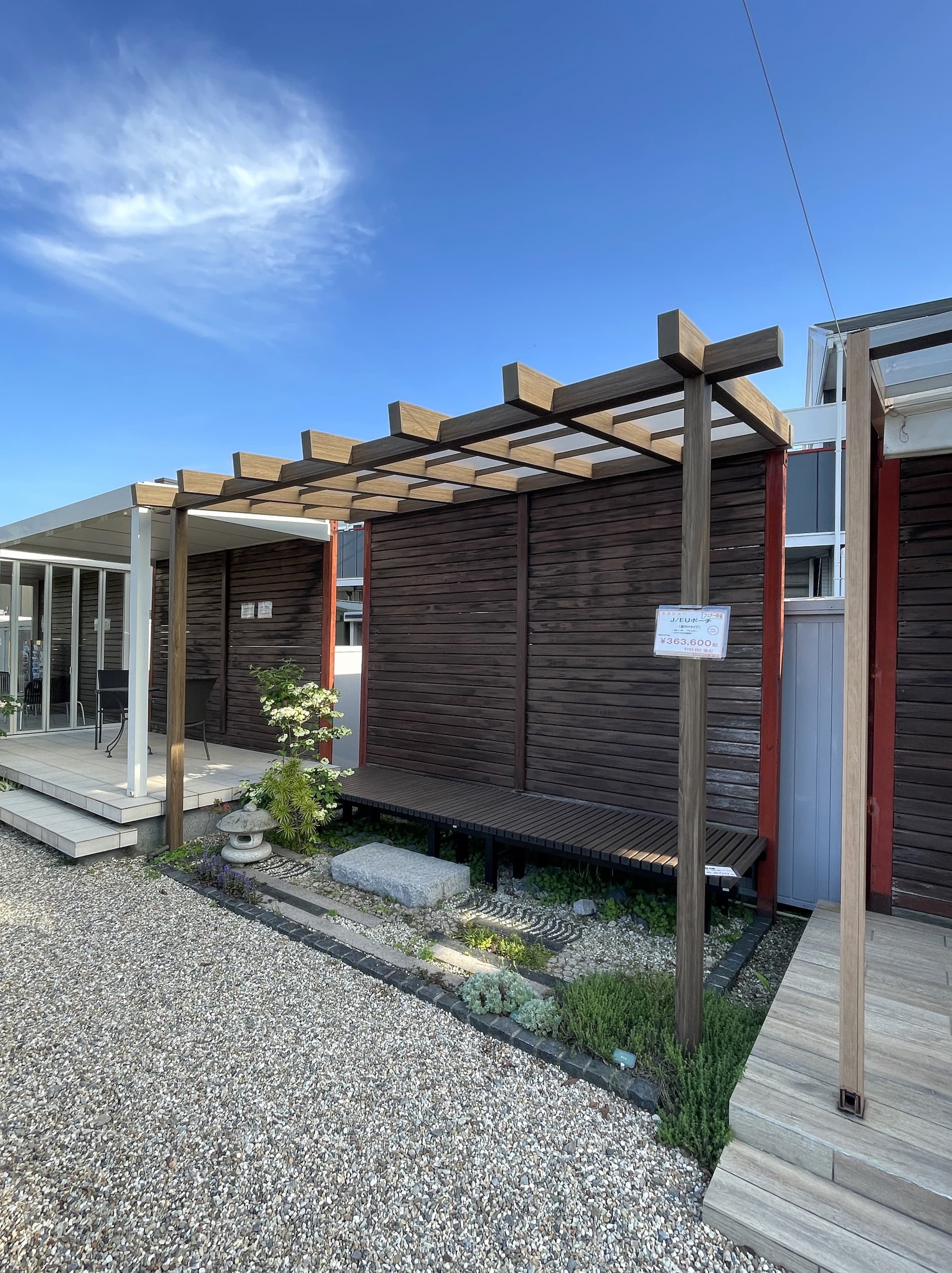 天然木のパーゴラを意識したデザインが魅力のテラス。伝統的な日本家屋のひさしとしてもお使いいただけます。