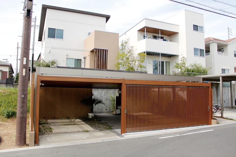 重厚感のあるRC杉板調タイルを使ったダイナミックなエントランス
