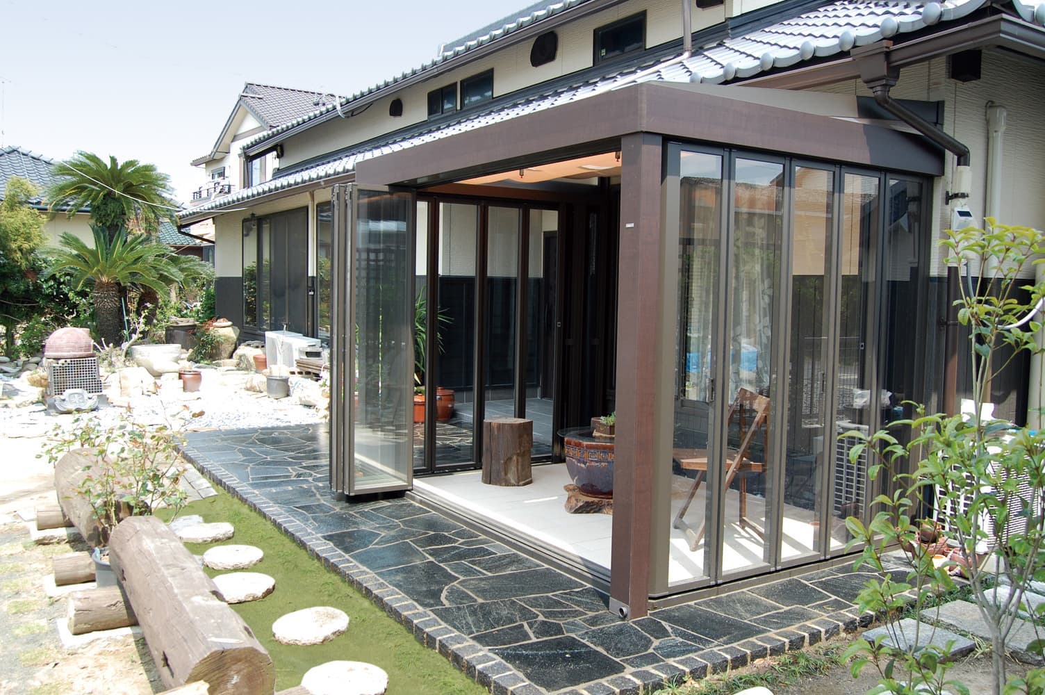 腰壁仕様などさまざまなスタイルが選べるガーデンルーム