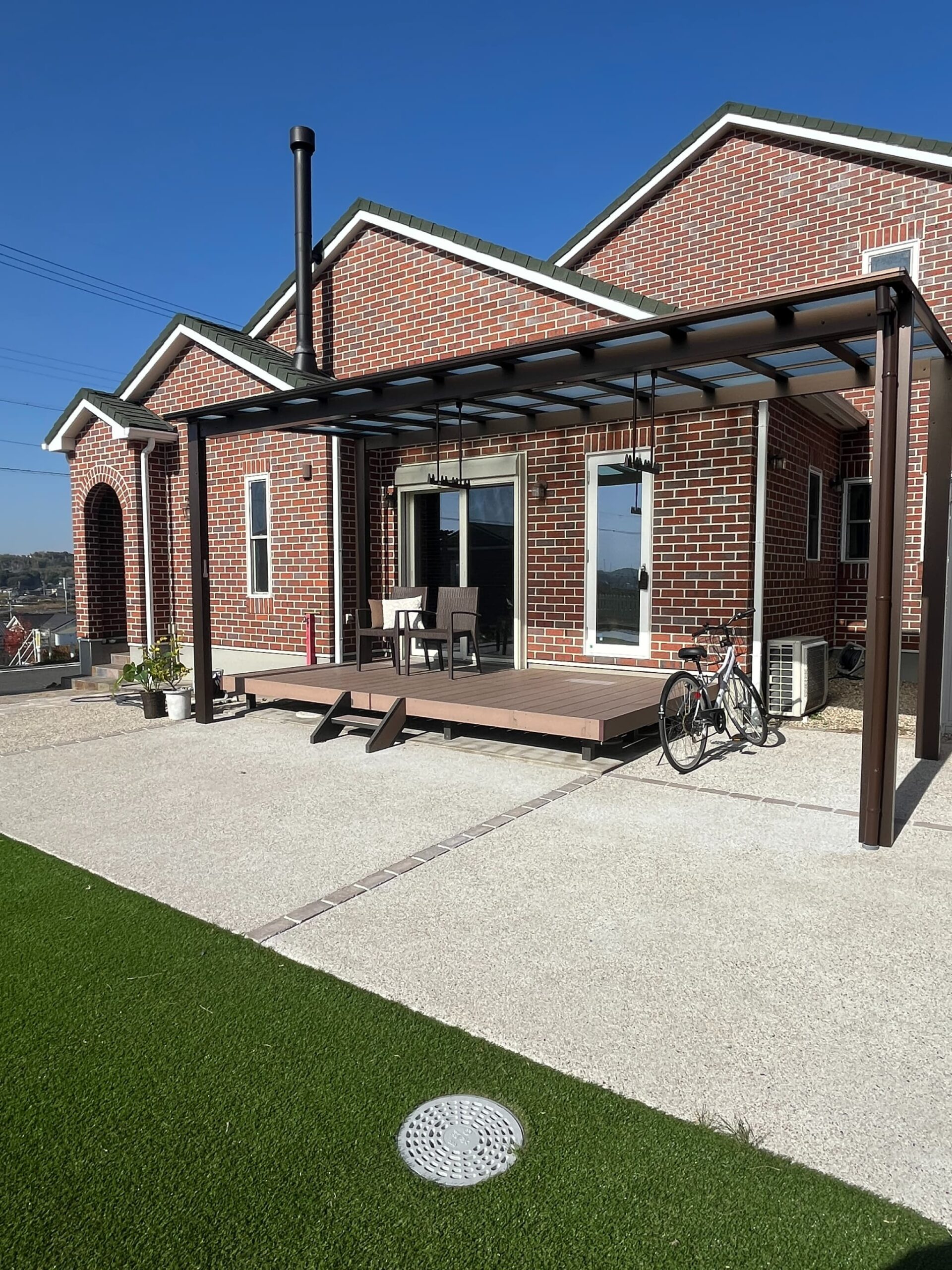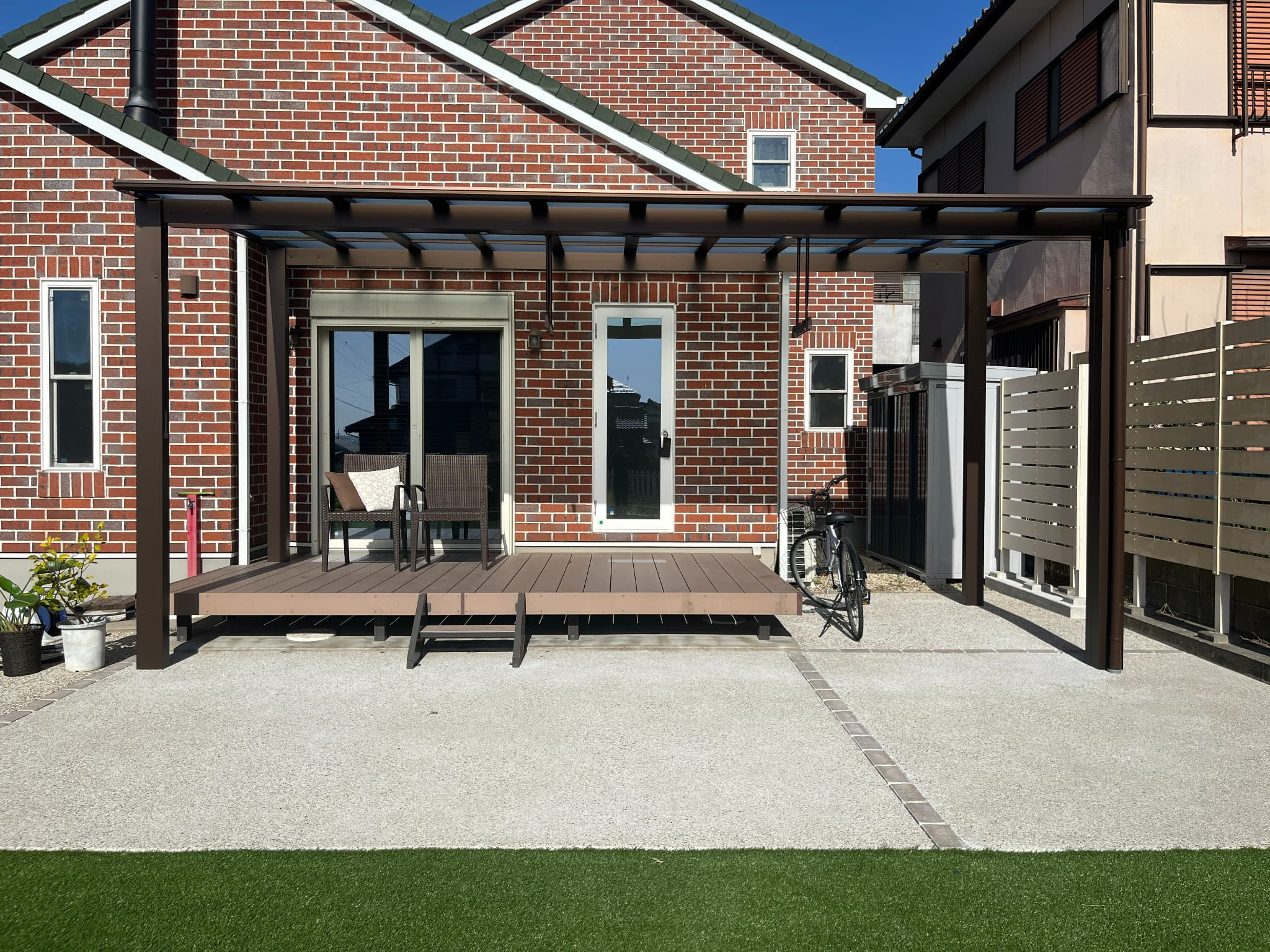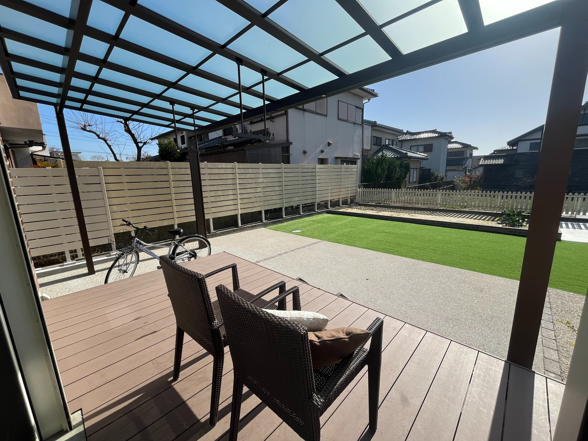 シンプルな形状が様々なデザインにマッチするテラスです。YKK エフルージュFirst大型テラス
