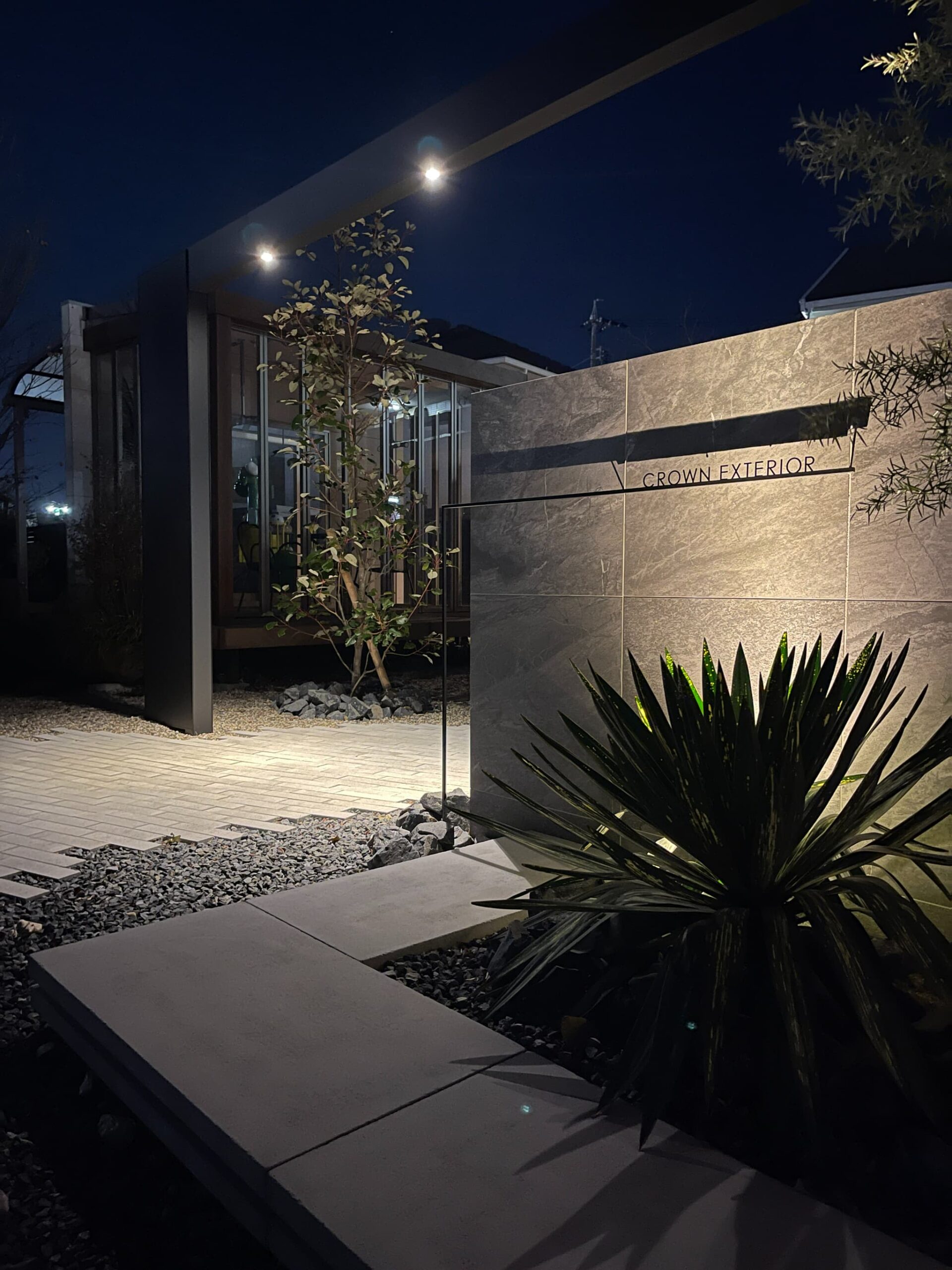 ダウンライトやアッパーライトでライトアップすることで植栽のシルエットを浮かび上がらせたり、門柱やアプローチなどを部分的に切り取ったりと、昼間とは違った魅力を引き出すことができます。