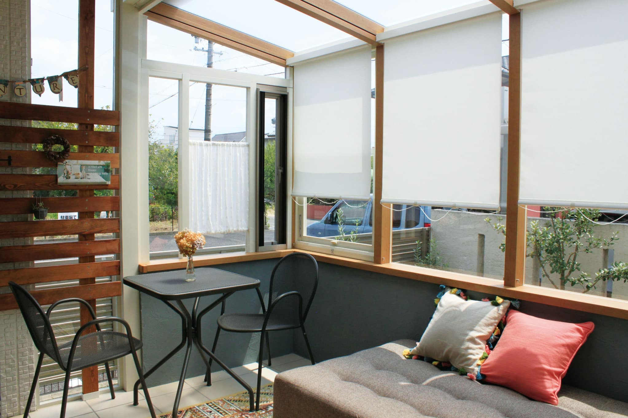 家とお庭をつなぐガーデンルームにお気に入りのインテリアを。天候に関係なくゆったりとくつろげる空間になりました。