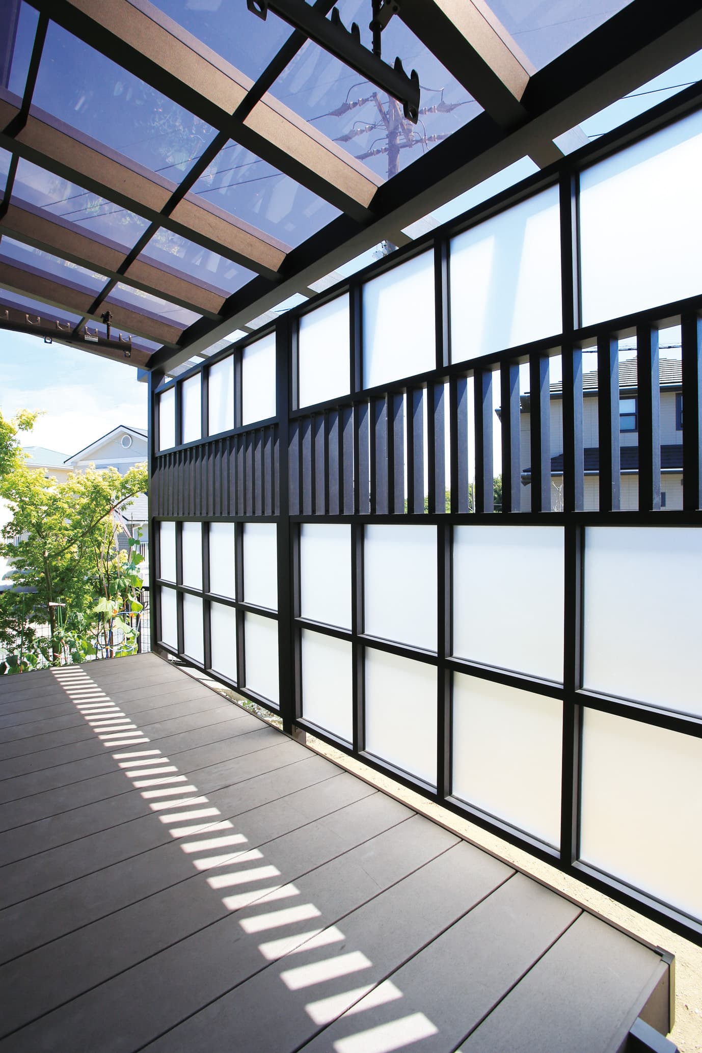 組み合わせが自由自在なテラスで、道路からの視線を遮りつつ明るさを取り込む空間に。